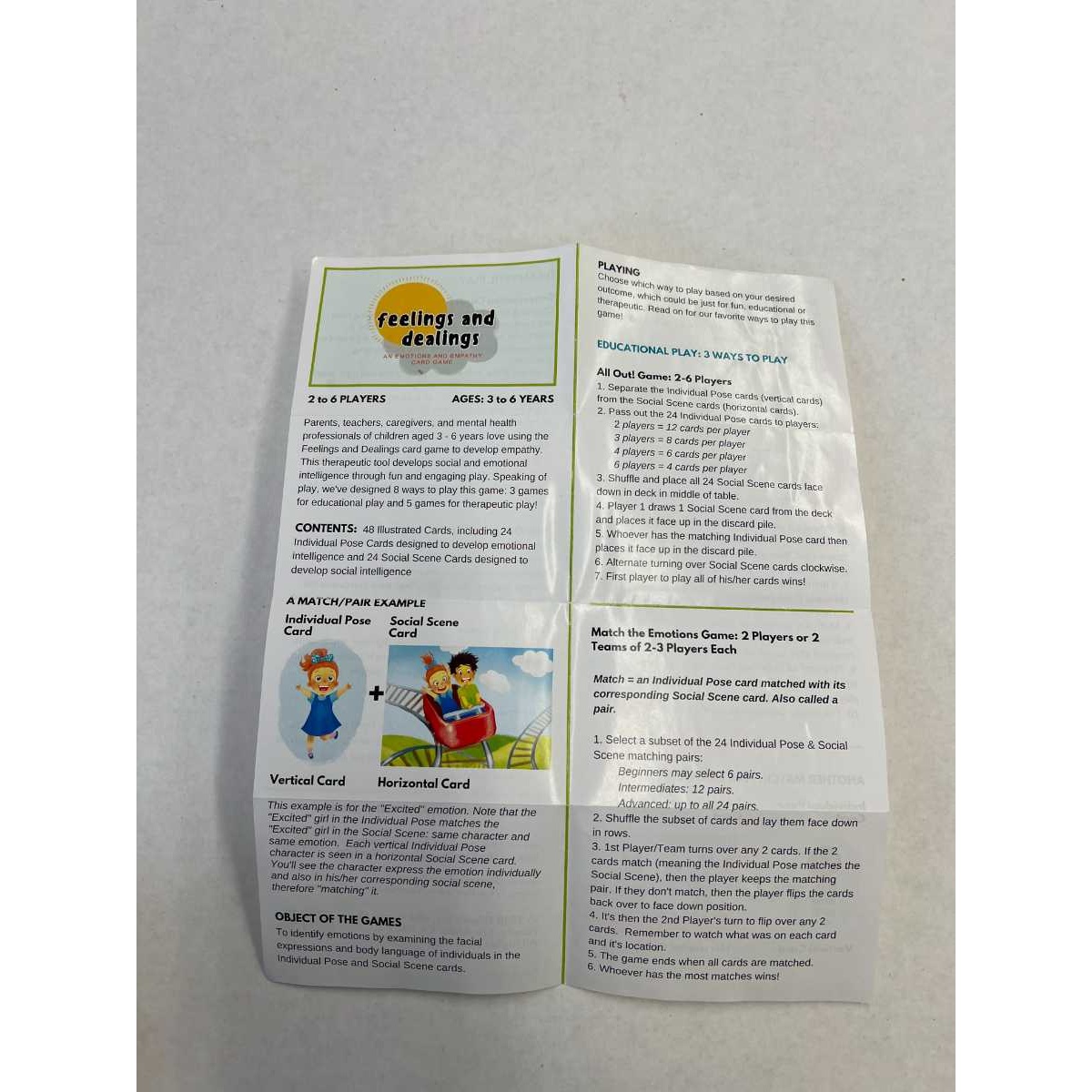 A social-emotional learning game designed for ages 3–6, this set includes 48 illustrated cards and multiple play formats to help children identify and understand emotions. Players match individual emotion cards with scenes that reflect those feelings, building empathy and emotional intelligence.