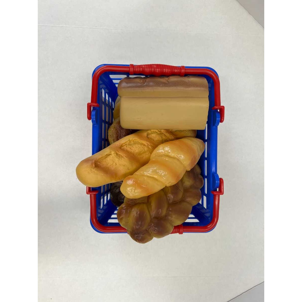 Our easy-tote basket is brimming with life-sized muffins, loaves, biscuits and more—perfect for adding a realistic touch to play kitchens and stores…or for introducing nutrition concepts! The big plastic basket comes packed with 15 durable plastic bread pieces. Basket measures 11"l x 8 1/2"w x 5"h.